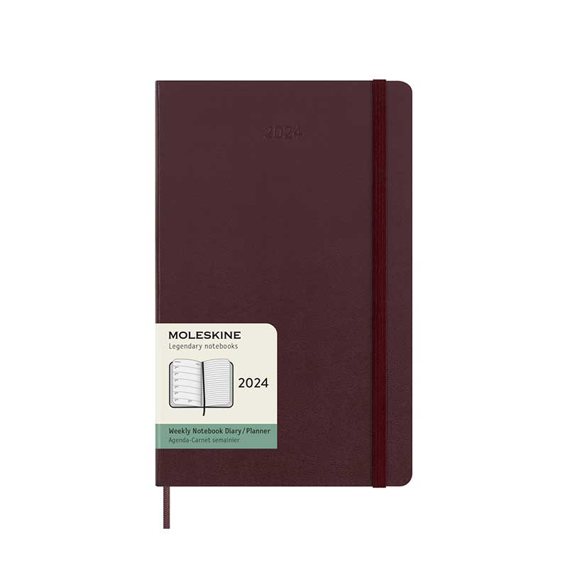 WEEKLY NOTEBOOK L BURGUNDY RED HARD 2024